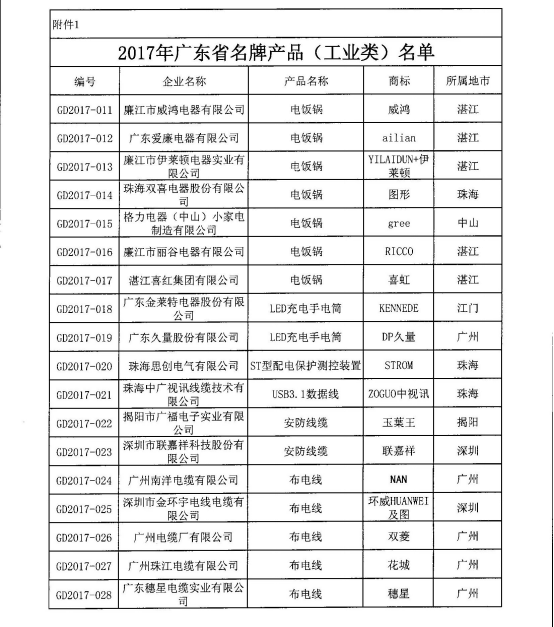 2018年3月19日,由廣東省質(zhì)量技術(shù)監(jiān)督局組織的2017廣東省名牌產(chǎn)品(工業(yè)類)評選名單正式揭曉,我司布電線憑借其過硬的產(chǎn)品質(zhì)量、較高的客戶滿意度和良好的品牌信譽,獲得“廣東省名牌產(chǎn)品”的殊榮。