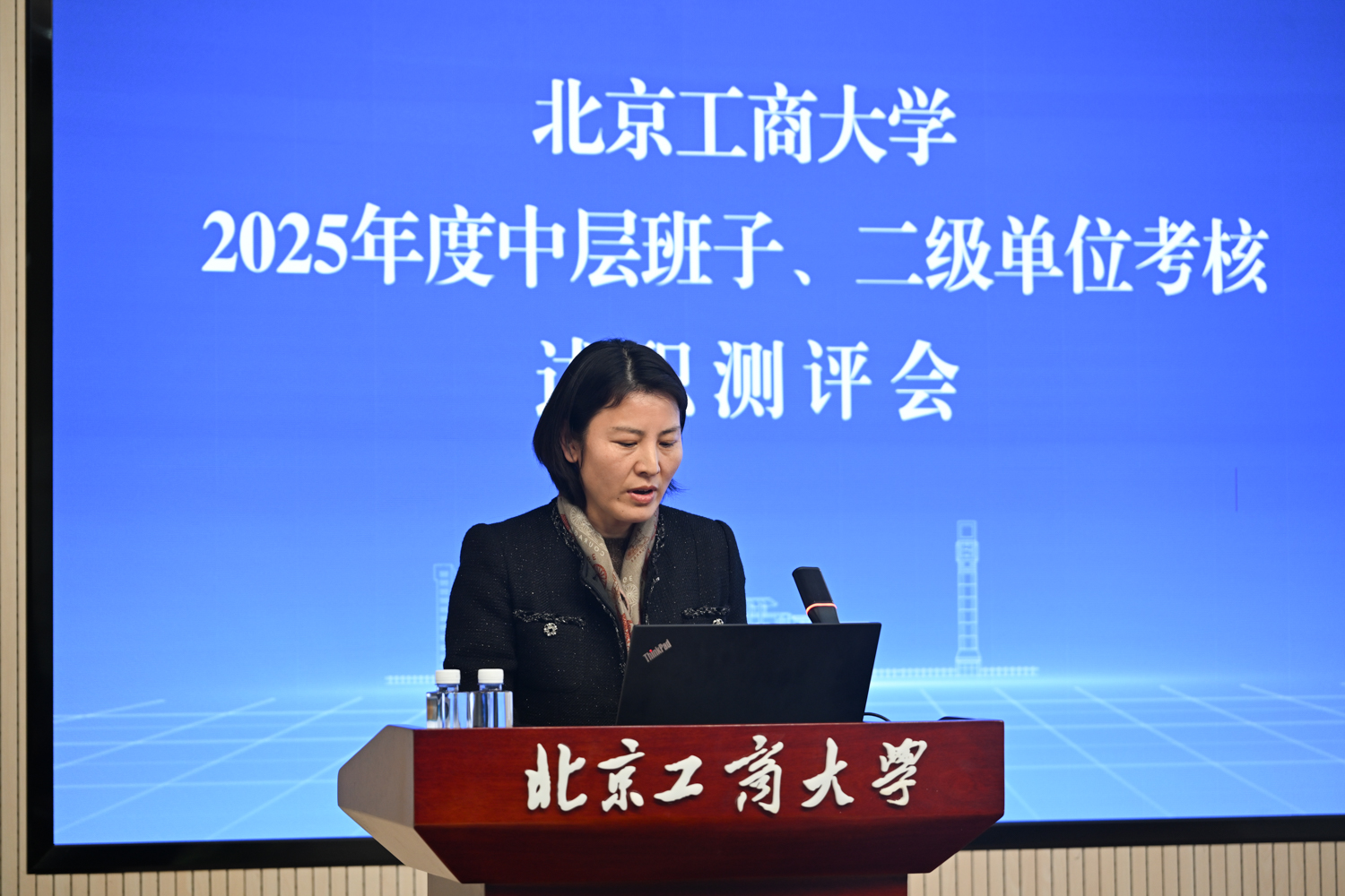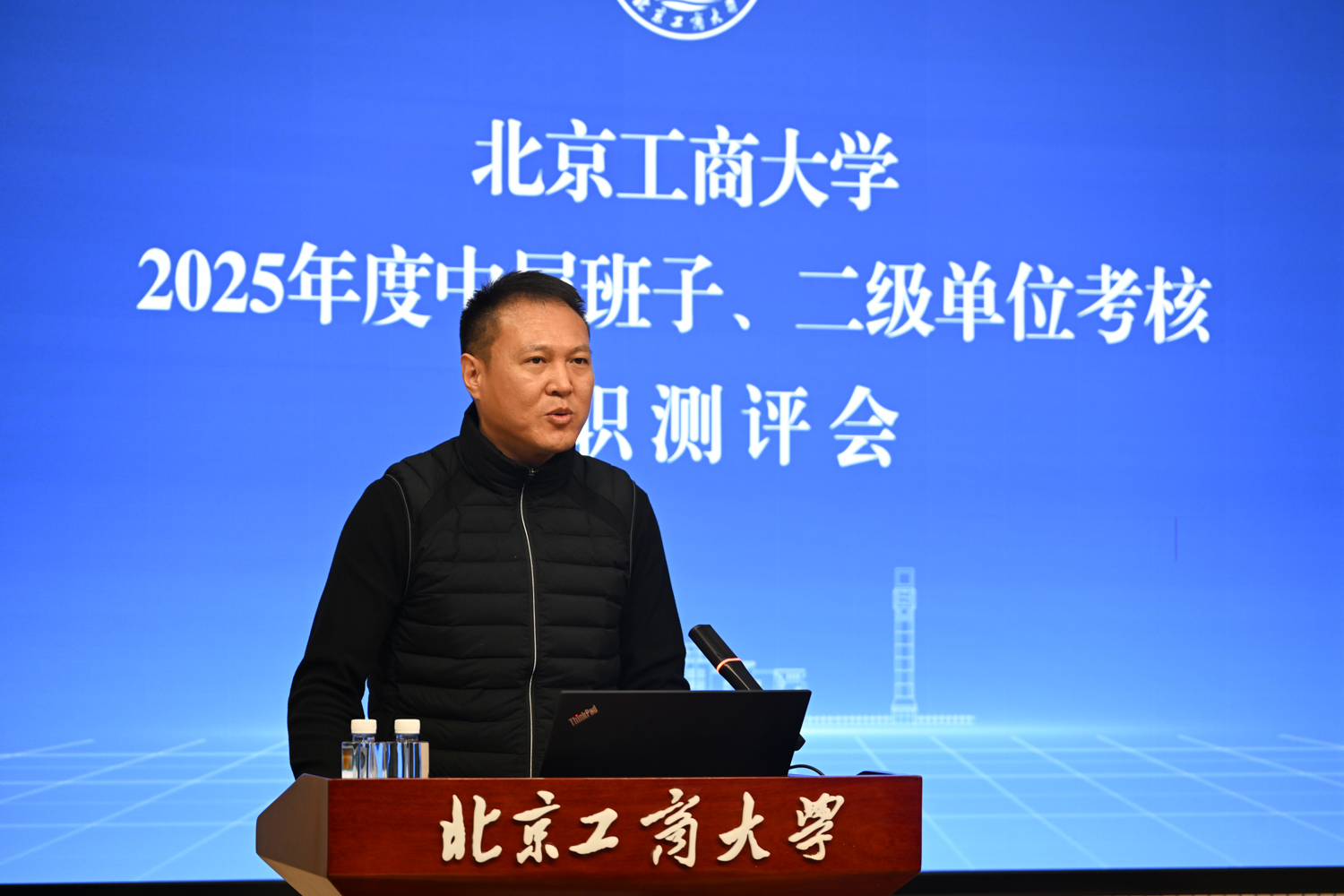 沈千帆作總結(jié)講話。他充分肯定了2025年全校上下以“工商一體化”發(fā)展理念為引領(lǐng),在加快推進(jìn)“雙一流”學(xué)科創(chuàng)建和高水平研究型大學(xué)建設(shè)方面取得的各項(xiàng)成績,同時(shí)就2026年工作提出三點(diǎn)要求:一是要提高政治站位,筑牢思想根基;二是要扎實(shí)推動(dòng)工作,強(qiáng)化擔(dān)當(dāng)實(shí)干;三是要嚴(yán)守紀(jì)律底線,永葆清廉本色。他號(hào)召,全體領(lǐng)導(dǎo)干部要以此次述職為新起點(diǎn),履職盡責(zé)、銳意進(jìn)取,切實(shí)把“十五五”規(guī)劃“藍(lán)圖”轉(zhuǎn)化為學(xué)校建設(shè)發(fā)展的“施工圖”和“實(shí)景圖”,共同譜寫北京工商大學(xué)發(fā)展新篇章!